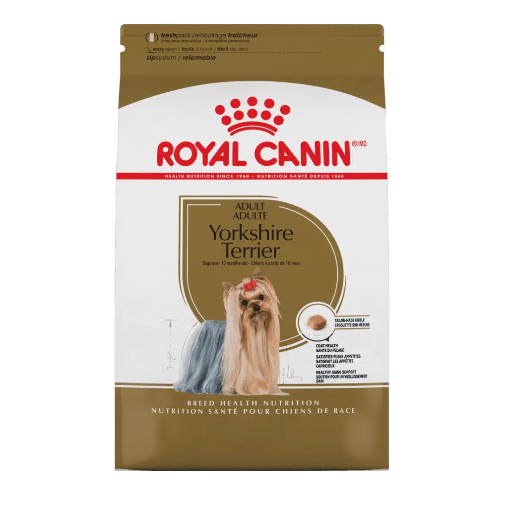 A BREED-SPECIFIC FORMULA FOR ADULT YORKSHIRE TERRIERS OVER 10 MONTHS OLD, DESIGNED TO SUPPORT COAT HEALTH, APETITE APPEAL, AND HEALTHY AGING.